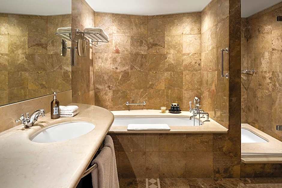 A spacious suite with a relaxing sitting area, king-size bed and marble bathroom.